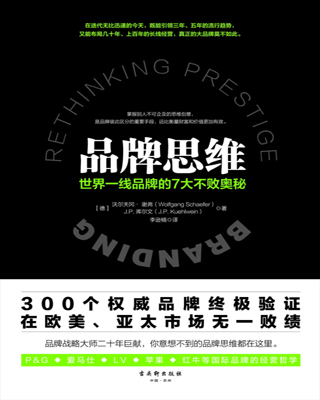 品牌战略大师沃尔夫冈• 谢弗(Wolfgang Schaefer)和J.P. 库尔文(JP Kuehlwein)汇集20年专业经验,研究了300多个知名国际品牌,进行了75次专业访谈,历时4年创作出这部跨时代巨著《品牌思维:世界一线品牌的7大不败奥秘》。