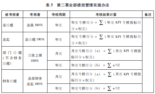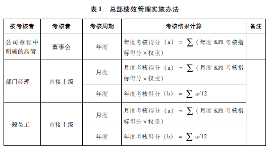 (3)绩效考核得分计算。当期绩效考核得分由各项KPI分值加权得出(有“否决性”指标的,必须符合要求),计算公式为: