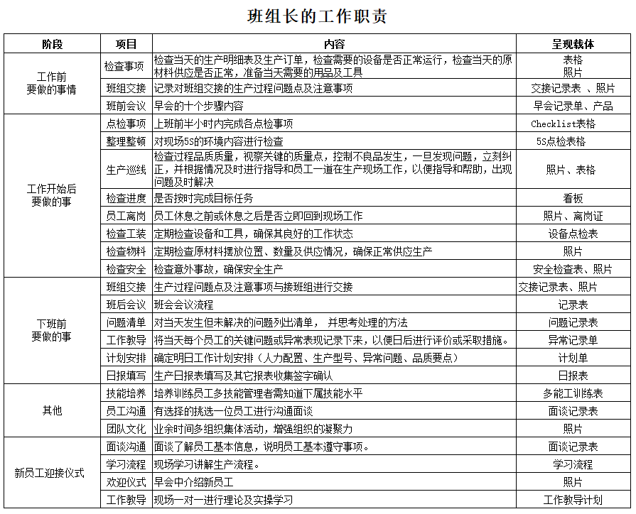每个公司赋予班组长的职责会有所不同,但是核心的一些内容,也就是班组长最根本要去关注的重点是一样的,这个内容不会变,也不应该变。