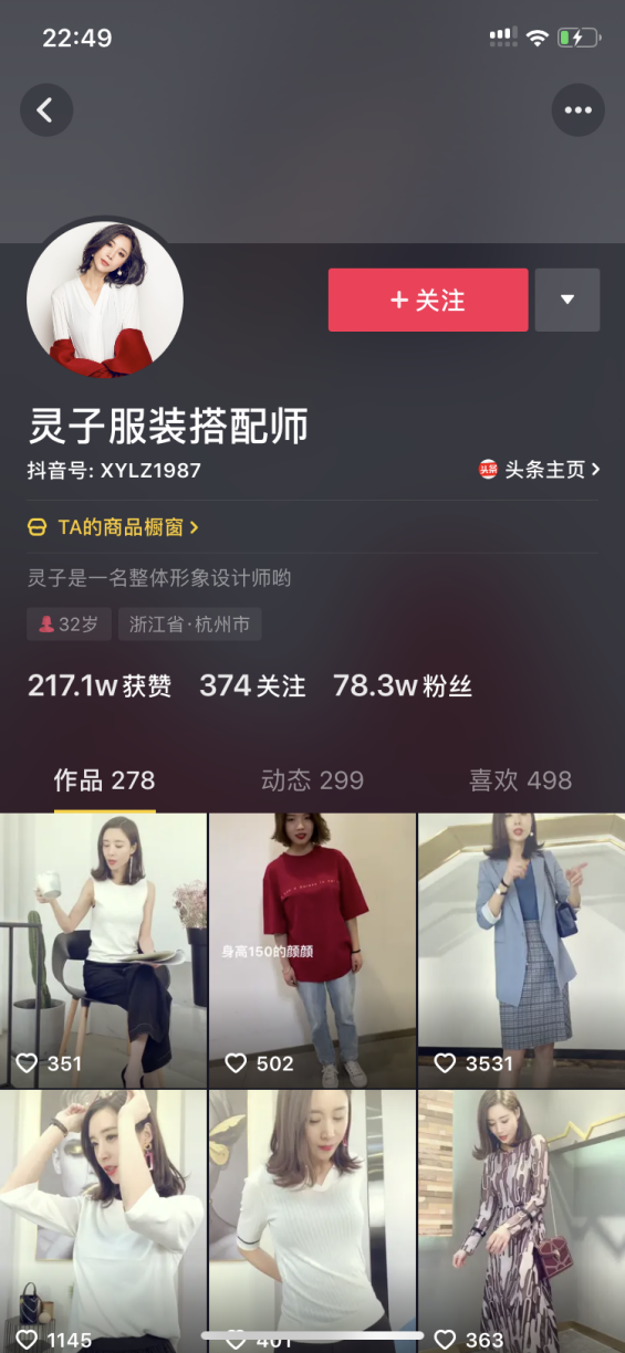 灵子服装搭配师,则通过专业分享服装搭配技巧,吸引目标客户(图4-4)。观众可以在灵子这里学习专业的服装搭配经验,自然慢慢被灵子影响。灵子的商品橱窗里可以上传相关产品,就可以营销转化。