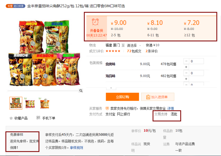 (3)样品是否包邮与该款产品大市场设置一致(包邮拿样专场除外)。