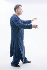 这几周教的式子都很难。每当练左右分脚我把腿抬起来时,总是要往后倒。落胯不够充分,脚底不够松沉,尾闾不够中正,否则就不会往后倒。好像不管任何式子,一旦有点毛病,问题总是这几个。好像不管什么式子,也都是为了重复训练这几个要领。我忽然想起前几周师父说过的话:“太极每招每式其实练的都一样,丝毫没有分别。”不管式子如何变化,都是为了从各个角度、各种身形来对太极基准八法进行深造。不管步伐跨大,也不管是踮脚尖、扣脚跟、还是抬脚,都是为了操根,都是为了练虚实分清。师父说:“一旦明白这个道理,太极就进步了,就不会再迷惑于拳架招式的不同,就不会再东学一套、西学一套。”