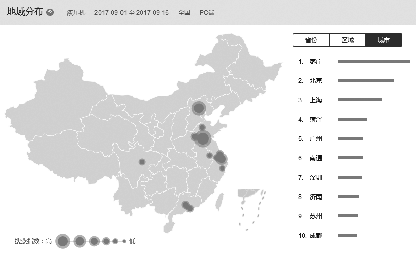图7-14 液压机的城市搜索量排序