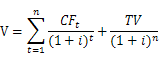其中,V为总价值;t为时期;CFt为第t期的现金流;为未来所有时期的平均折现率。