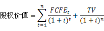 式中,假设预测期共有n期,预测期最后一期股权自由现金流为,永续增长率为g,权益要求的回报率为