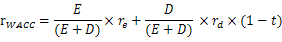 ,D表示负债的市场价值,E表示权益的市场价值,t表示所得税税率。