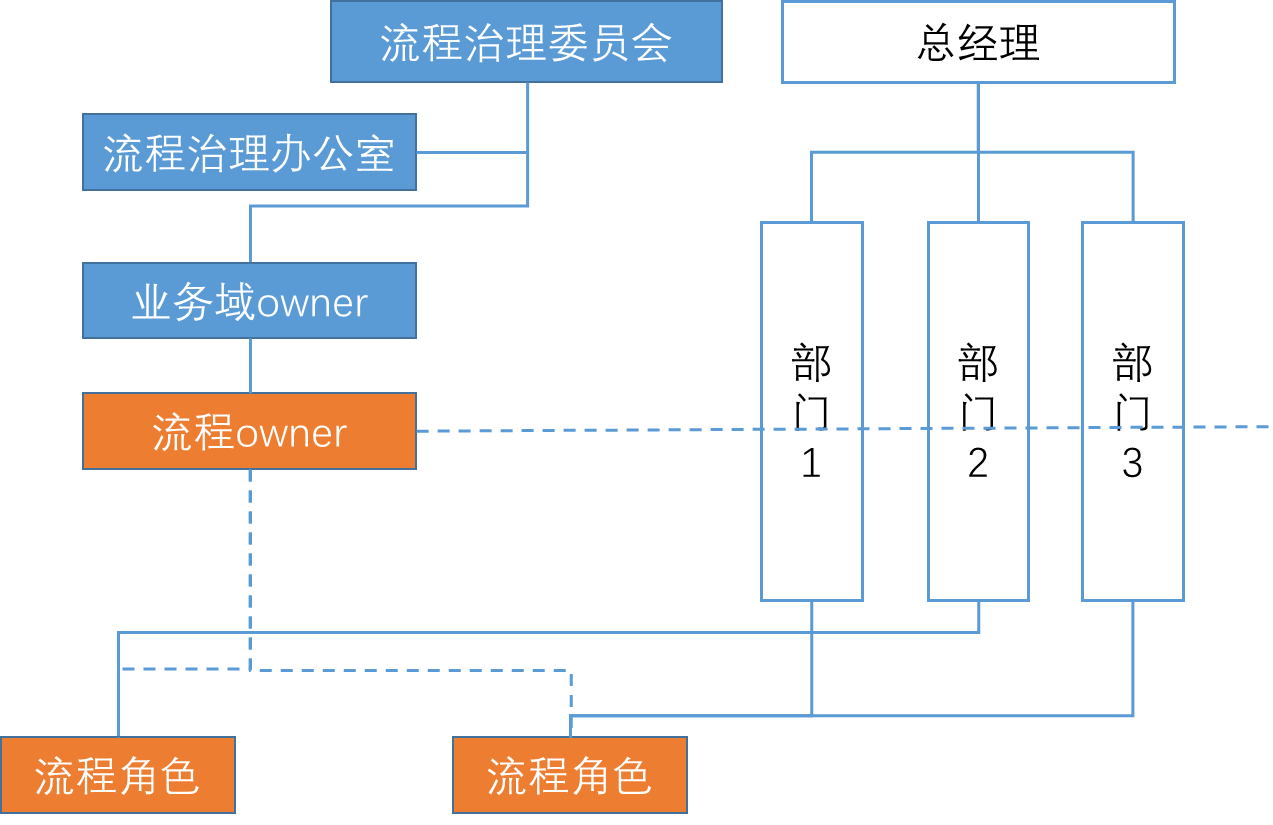 流程owner要承接流程治理的政策、制度、管理规则,还要遵从业务域owner的管理要求,对所管辖流程覆盖的业务进行横向的业务管理,以矩阵式管理的方式切入业务管理,确保业务按照流程操作。