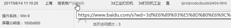 图3-62就是我刚才点击广告进入网站的访问记录,用鼠标放在【搜索推广】位置,看到的是一条搜索某关键词的结果(s?wd=这几个字符的意思是搜索的关键词,后面一串字符是“3d打印机工业”汉字的计算机代码),完全跟正常的搜索结果一模一样,看不到任何网盟的痕迹。
