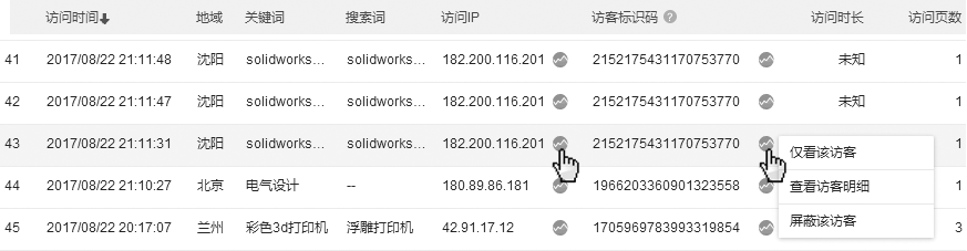 图3-64 在百度【实时访客】里发现恶意点击直接屏蔽