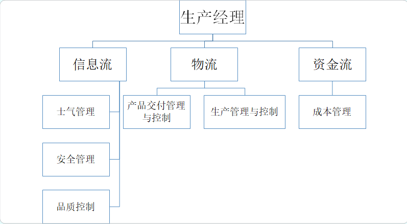 生产经理的日常工作职责是围绕“生产、品质、成本、交付、安全、士气”六个要素开展,如图3所示。生产作为生产经理首要的工作职责,它的一切来源可以说是一纸订单。为了满足订单上的交期,必须提高一次合格率、控制生产成本,在安全的生产环境下激发员工鼓足干劲开展一系列生产活动。在接收订单那一刻起,无论是对业务部信息的反馈,还是生产过程中对生产信息的确认,都是生产经理必须重视的内容。总的来说,整个制造供应链其实是物流、信息流和资金流的集成。整个生产过程其实就是一个物流过程,而在这个物流过程中,对于订单的扭转及生产信息的一系列反馈,又是一个信息流的过程。企业通过成本的核算和客户资金的回笼,才能让企业继续生存和运营下去,这些都是资金流的过程。针对生产经理的六大工作职责,我们可以把他的工作分为物流、信息流和资金流三大部分来展开分析,如图4所示。