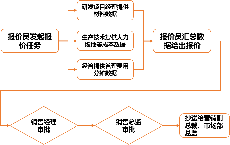 报价流程作为管理机会模块中的一个核心业务,要在产品利润率与市场竞争力中取得平衡,就要先有标准报价,然后再审批的流程设计逻辑。另外,针对不同产品的报价应该有一套标准规范,这个需要根据企业的实际情况来定。