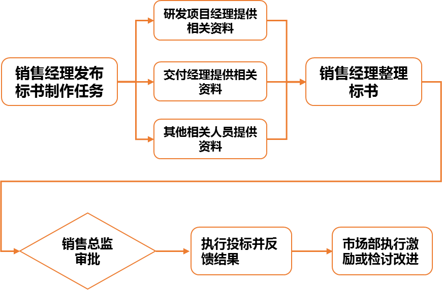03 | 销售项目经理 | 汇总收到的标书任务,整理出符合公司与客户要求的标书 | 8H | 输入:标书资料收集完成 输出:标书初稿 |