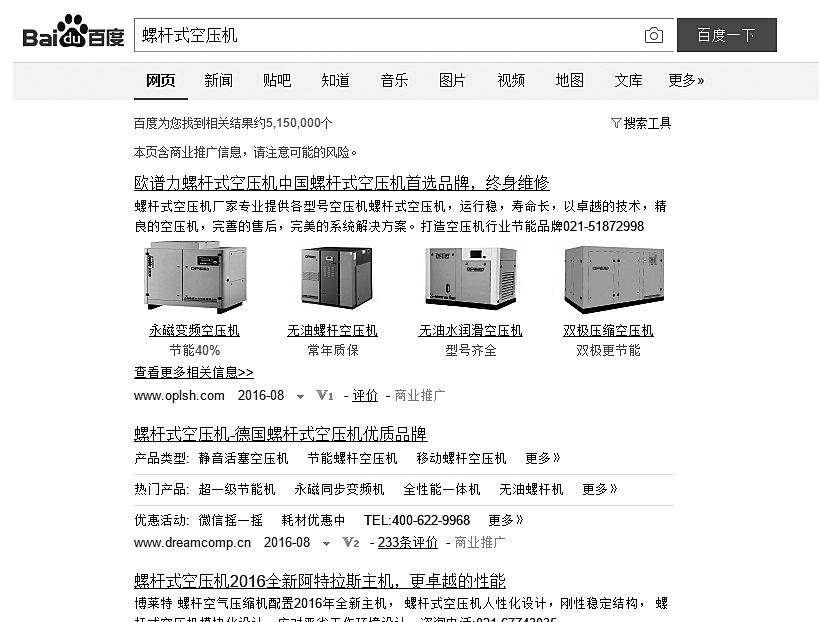 图3-1 在百度上搜索“螺杆空压机”时搜索结果首页
