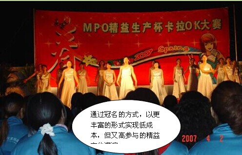 通过丰富多彩的宣传活动,如晚会、活动、比赛、沙龙等,在精益生产与员工之间搭建起一个互动的渠道。员工不再仅仅是按部就班的执行者,他们可以通过这些活动参与到精益的事业中来,并在管理者和员工之间形成一种良性的沟通和互动,拉近员工和管理人员之间的距离,增强员工的企业归属感。