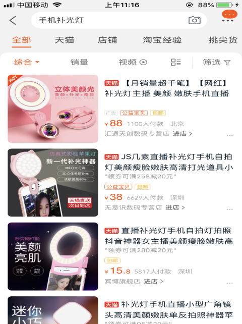 推荐大家到淘宝网店买一个便于携带的补光灯,补光灯很小,可以夹在手机上,无论是自拍还是拍美食都非常好用,完全解决了夜间拍摄光线不足的问题,如图2-26所示。