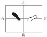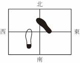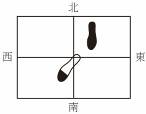 2.左脚不动,右脚向前荡出于左脚尖一步前,右脚尖向西北侧。