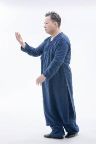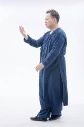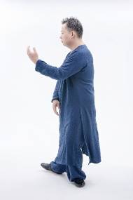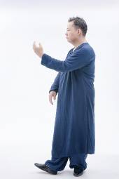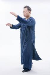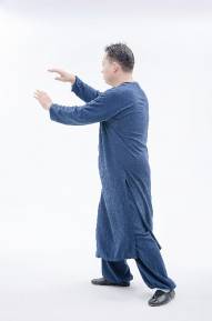 2.右脚不动,左脚尖向右旋135度转向正南方。身体转动时,保持尾闾中正。