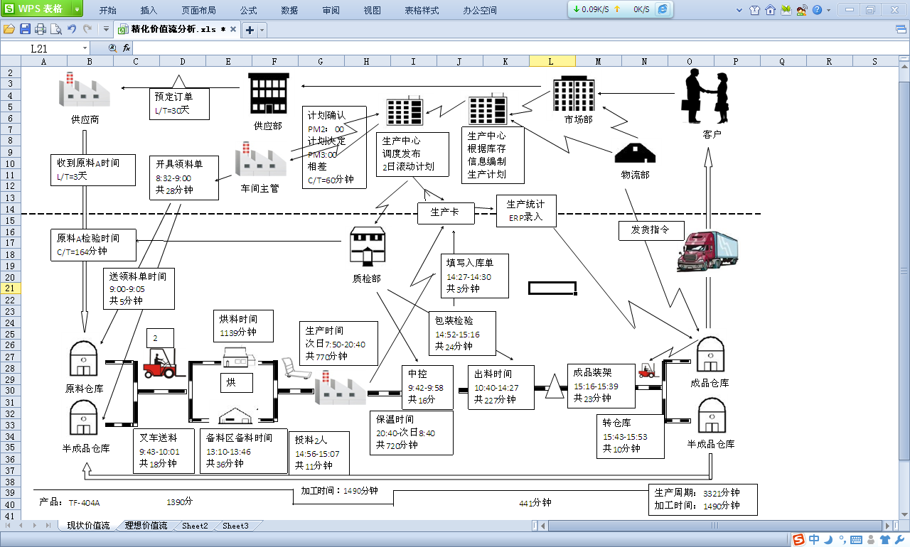 图5.21某化工企业TF-404A产品价值流程图(改善前)
