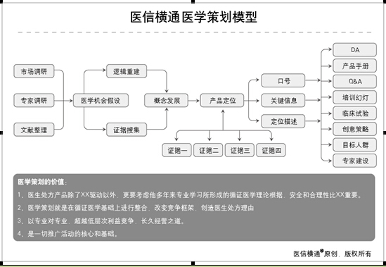 3.验证难。公司回款是通过销售来完成的,是最直接的,医学策划的效果最终也是通过销售回款来体现的,但是你又不能明确地画出一个界限,所以医学策划的功劳除非达到像我书中写的那几个经典案例那样的效果,否则很难验证。所以我向各位尊敬的企业决策者建议,即便医学策划不容易验证,也要充分理解、充分认可、充分支持。