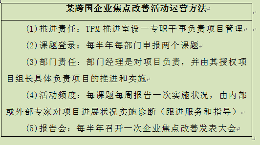 表4-14 某跨国企业焦点改善活动运营方法