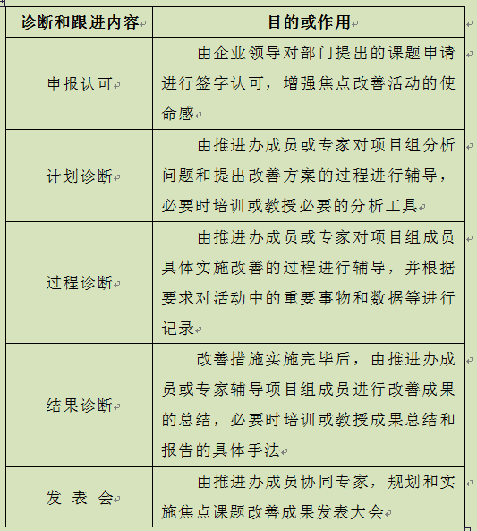 表4-13 焦点改善项目管理的内容和目的表