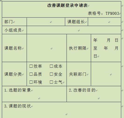 为了让课题登录本身具有更加神圣的使命感,最好的做法是,要求部门提出课题申请,经公司总经理认可后实施。这样做的好处在于变被动(被上司或公司要求做)为主动(我要做)。
