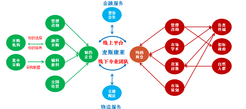 现在,医药行业的企业尤其是制药企业,面临营销层面的诸多问题,这些代理模式为主的制药企业、也包括其他自营队伍较弱的制药企业解决未来必将到来的艰难时局。这个解决方案就是麦斯康莱以第三方的身份建立一个专业的服务厂商的体系。这个体系主要通过线上平台和线下专业团队形成服务体系,为诸多制药企业和纯销商业构建对接平台,同时发挥两个公司的专业能力,长期为合作的制药企业发展保健护航。