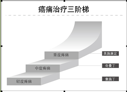 重度疼痛给予强阿片类(代表药物为美施康定),为第三阶梯。