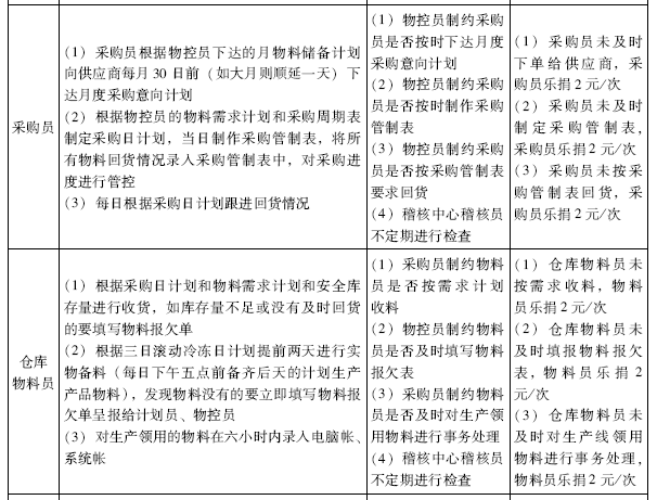 :对,后面也都有相关的责任。物控员未按时完成1-2项相关工作,那物控员就要乐捐,就要承担责任。采购员未及时下单给供应商,采购员也要承担责任。