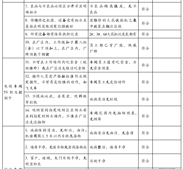 5.电线车间5S行为控制卡 6.拉丝车间5S行为控制卡