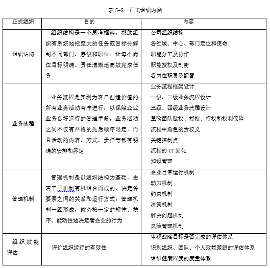 正式组织的内涵,通常包括4个方面内容,见表5-8。
