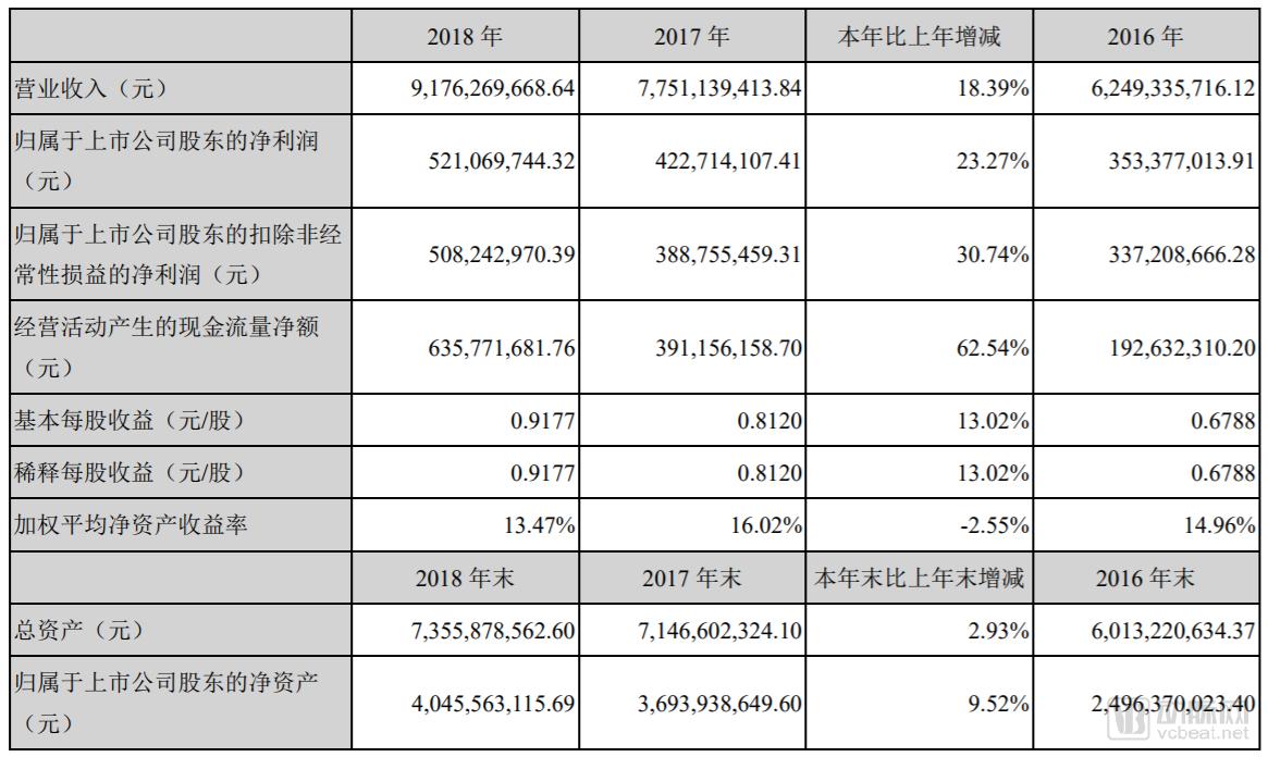 2019年2月25日,一心堂发布2018财年年度报告。财报显示,2018年度,一心堂实现销售收入快速增长,报告期内,一心堂实现营业总收入91.76亿元,较上一年同期提高18.39%;营业利润6.84亿元,较上一年增长34.86%;利润总额6.92亿元,较上一年增长26.48%,如表3-1所示。