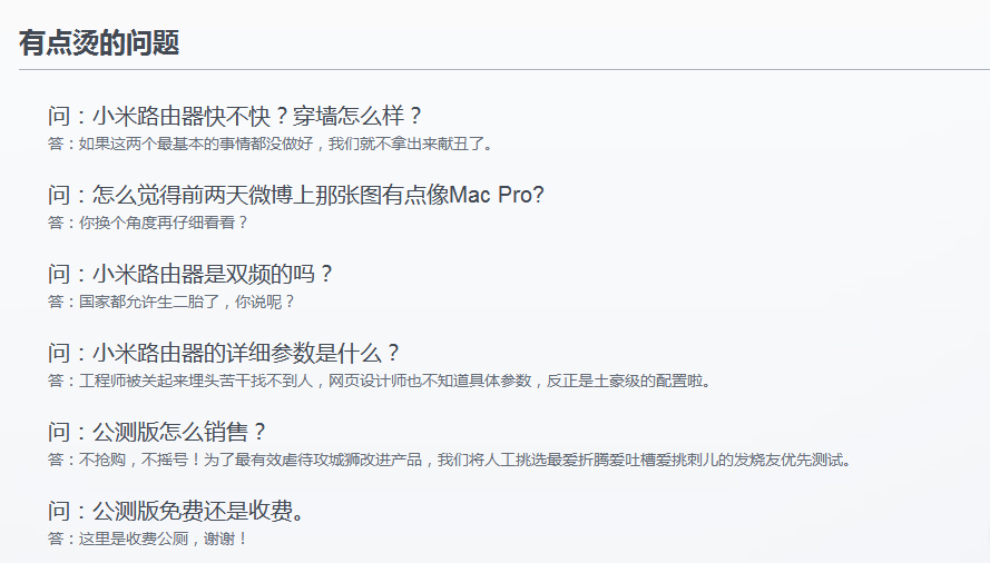 那么,购买环节还有没有选款环节呢?依然存在,但是这时候的选款,范围缩小了,集中于同竞品的功能对比,在移动互联的时代,这些问题往往不是通过导购完成的,而是集中解答的,是一个秀幽默和技术的机会: