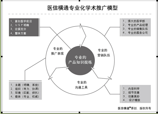 这是学术推广的核心,是推广的内容。什么叫专业的提炼呢?让医学专家认可的就是专业的;自己说得挺兴奋,但医生听了都懒得反驳、懒得提问的就是不专业。