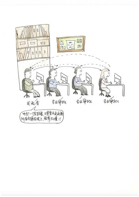 就像上图一样,很多企业都存在这个现象,所有工作沟通,通过电子流来回折腾。企业大了,一切线上流程办事,实际上这是一个误区,线上流程并不能完全代替线下沟通的价值,否则电子流程会阻碍流程效率。