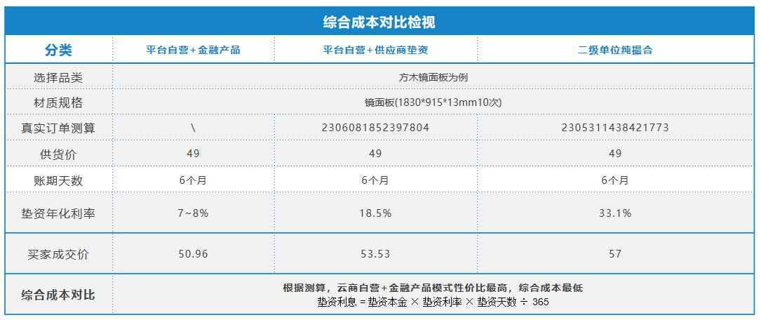 根据测算,平台自营模式+金融产品性价比最高,综合成本最低。