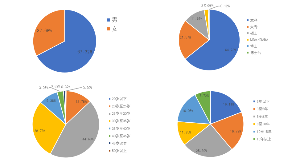 四是性别结构:在人才结构中也可以看一下男女性别比例,通常在电