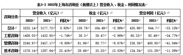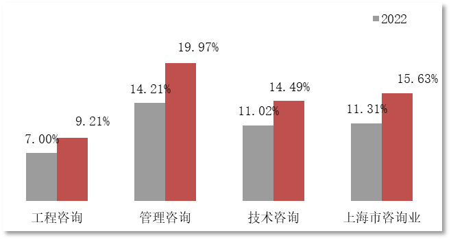 2022年,上海市咨询业受疫情静默抑制,增长势头受到影响,经济效益也有部分下降。