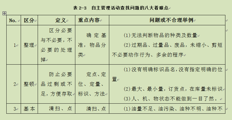 (2)回头看(5S)问题点的识别和记录;