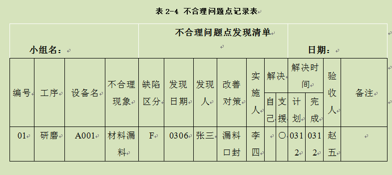 表2-4 不合理问题点记录表