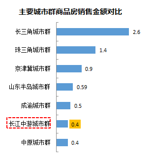 而从商品房销售金额对比来看,长江中游城市群与其他城市群相比差距非常大,仅占长三角的1/6,房地产市场成熟度较低。