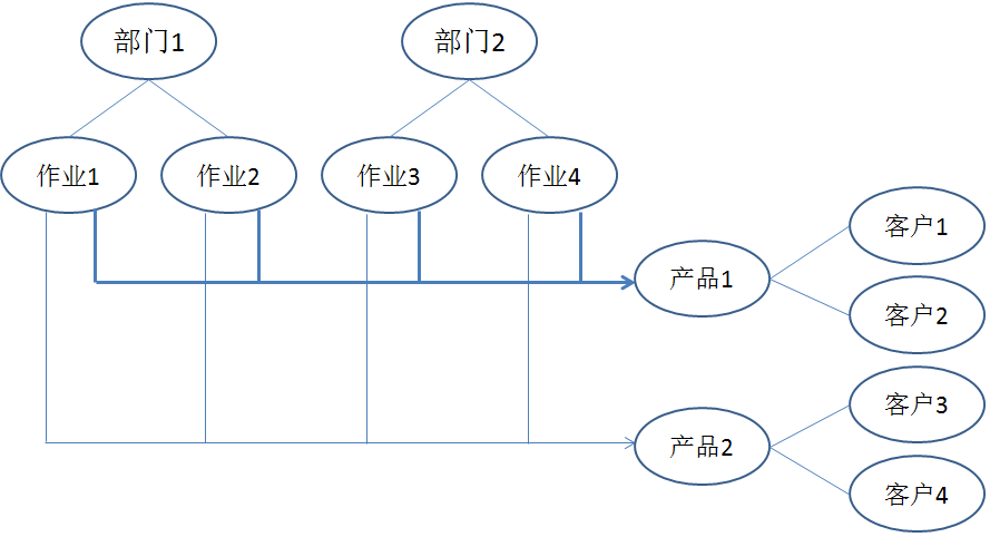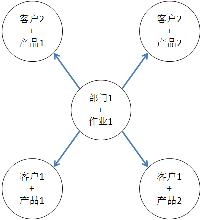 (3)万人万饼,即不同客户不同产品的成本,均由众多部门和作业提供,如图2-5所示。