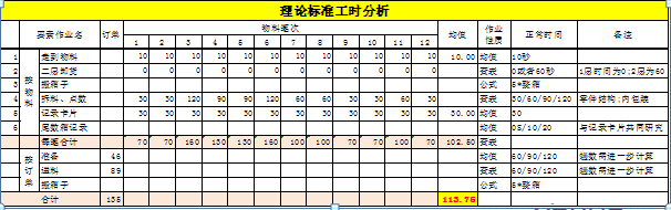 这里面的思路是将每一个步骤的用时采用三种方式来归类:第一类认为是定常时间,就是每次作业时间是固定的。第二类认为可以采用查表法实现;第三类认为是回归公式,在实践中,通常采用Y=A+BX的一次线性公式。