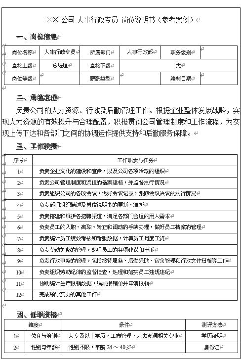 以下是我总结拟定的两个岗位说明书模板,每个模板都附带一个参考案例。目前管理基础较为薄弱的企业,可以采用模板A,后续再升级完善;而已经有岗位说明书基础的企业,可以采用模板 B。