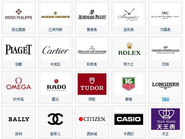 第二,留意顾客的配饰。根据不同的配饰可以看出不同的层次,如车钥匙、包包、品牌名表等,导购员需要熟悉比较著名的品牌,高档产品的佩戴者基本为高端顾客,在向他们推荐产品的时候,也应推荐比较高档的产品。当然这也需要我们记住一些奢侈品品牌,如图4-1、4-2、4-3所示。