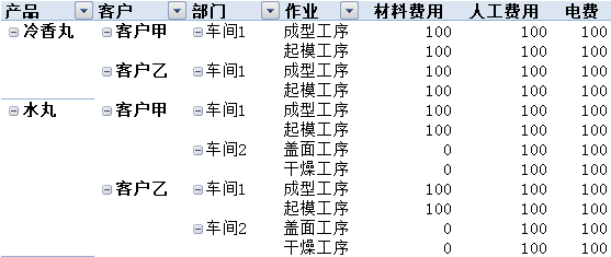 有了各维度的成本计算表,就可以分别进行多维组合成本的分析查询了。