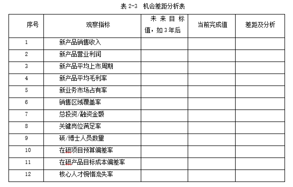 机会差距的分析方法目前尚没有统一共识的工具及方法,依据我们的咨询实践,认为以表2-3所列是有效的机会差距分析方法。