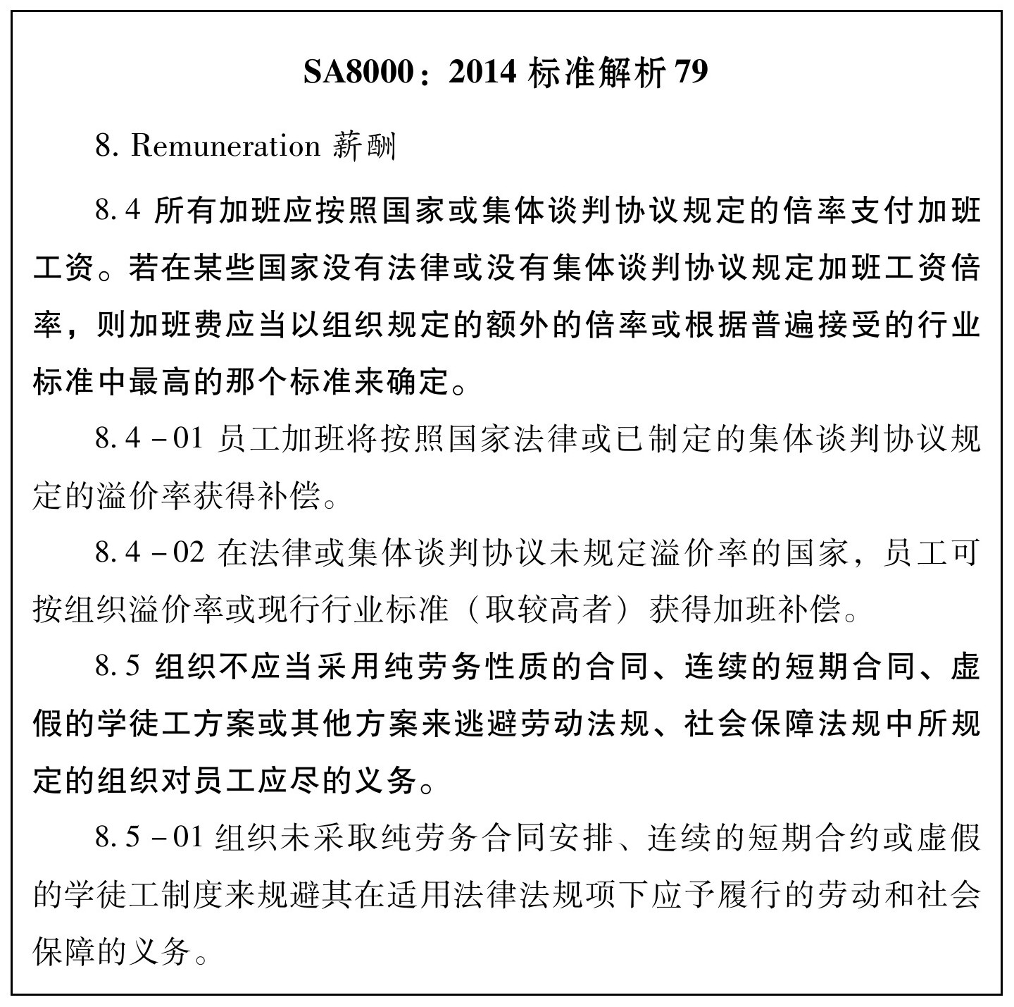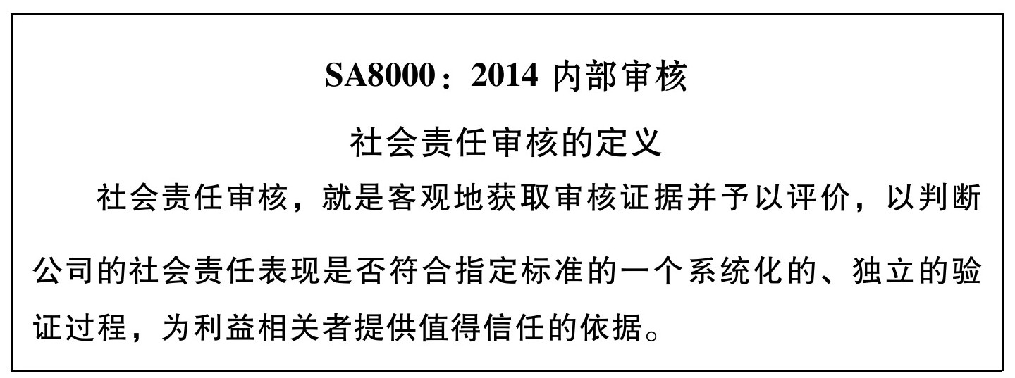 2.按计划,每隔五年,SAI组织都将对SA8000标准进行一次修订,以确保它的连续性和适用性。