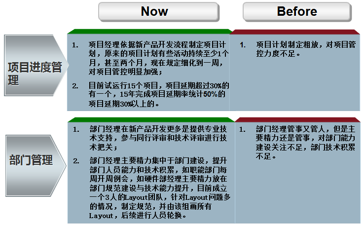 咨询项目运作一年时间后,由金卡智能公司自身进行了IPD咨询项目效果总结,取得的定性效果是: