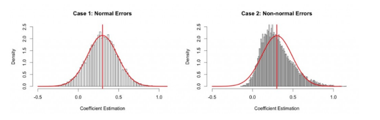 图3-21 正态分布(左图)和非正态分布(右图)的示例,来源于网络